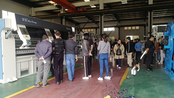 此次,上海百?gòu)?qiáng)洗滌設(shè)備制造有限公司由于特殊原因沒有在洗滌展設(shè)立專門的展位,而是以一種特殊的模式參與中國(guó)洗滌展。這種方式就是以廠為展,在廠區(qū)內(nèi)設(shè)立設(shè)備展位,如130kg傾斜式洗脫機(jī)、節(jié)能烘干機(jī)、高速燙平機(jī)、高速折疊機(jī)、四工位展布機(jī)等等,還有一臺(tái)燃?xì)鉅C平機(jī)(作為本次展會(huì)的隱藏設(shè)備)。