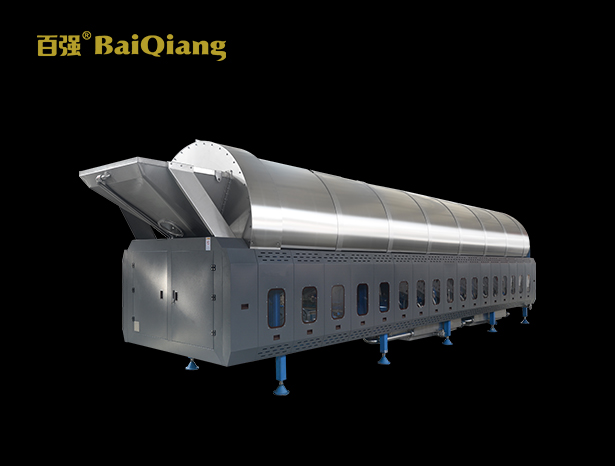 百強(qiáng)隧道式洗衣機(jī)系列(國內(nèi)稱之為“洗滌龍”),與傳統(tǒng)洗衣機(jī)相比,該設(shè)備采用了 水循環(huán)和過濾技術(shù),極大降低了水消耗和蒸汽消耗;可節(jié)水 70%、節(jié)電 60% 以上,節(jié)省人力 80%。傳送和洗滌倉采用較佳配比設(shè)計(jì),造就其強(qiáng)大的洗滌機(jī)械作用力和洗 凈度。不銹鋼滾筒及洗衣龍連接管線均按照德國的質(zhì)量標(biāo)準(zhǔn)和衛(wèi)生標(biāo)準(zhǔn)設(shè)計(jì)制造, 觸控式面板操作智能簡便,洗衣龍內(nèi)置標(biāo)準(zhǔn)洗滌程序,可以自由編制洗滌程序。雙馬 達(dá)驅(qū)動裝置,保證了龍運(yùn)作的穩(wěn)定性。百強(qiáng)洗滌龍技術(shù)以穩(wěn)定、實(shí)用、簡潔、維護(hù)成 本低為基礎(chǔ),以適應(yīng)中國市場為出發(fā)點(diǎn),用優(yōu)質(zhì)的產(chǎn)品,良好的服務(wù)去營造品牌優(yōu)勢。